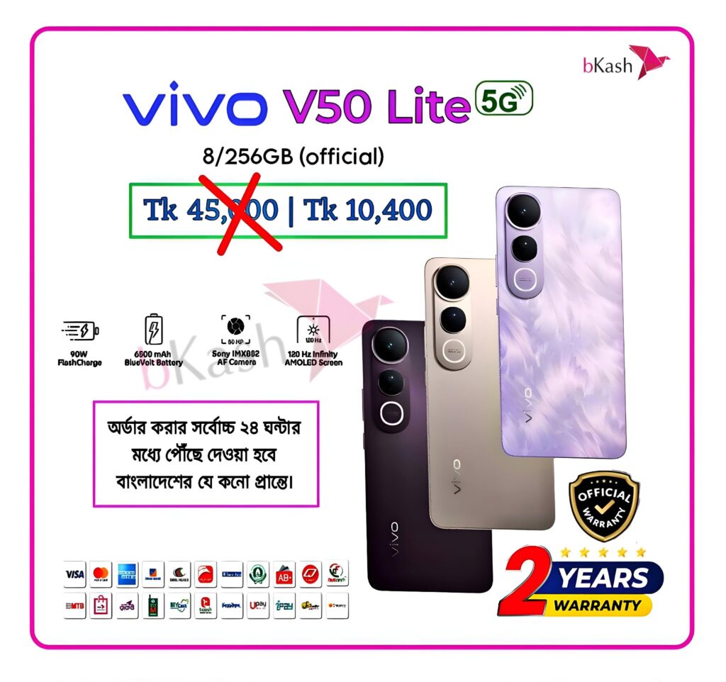 vivo V50 Lite 5G, 8/256GB official, Bkash Campaign offer